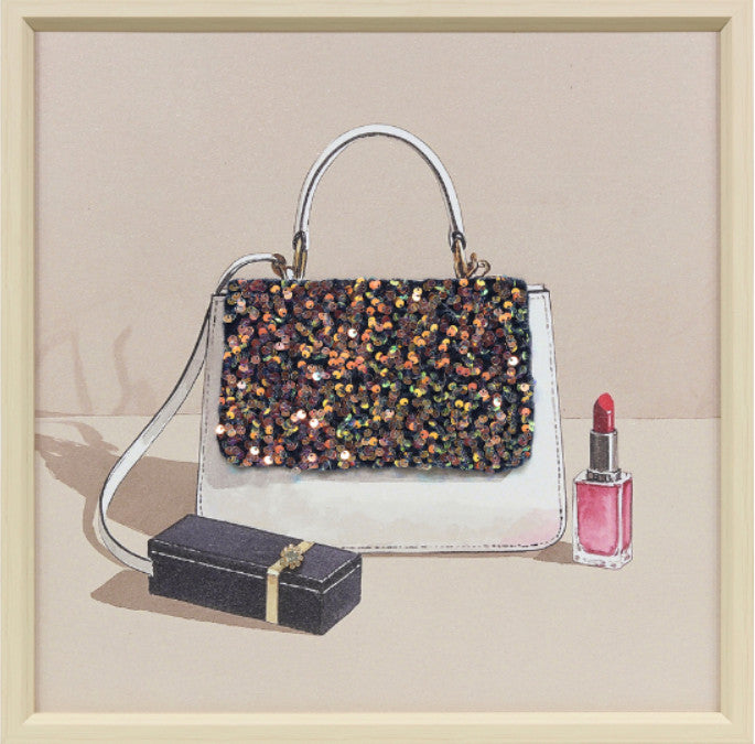 Ingelijst schilderij met versiering 40x40cm Gestippeld tasje