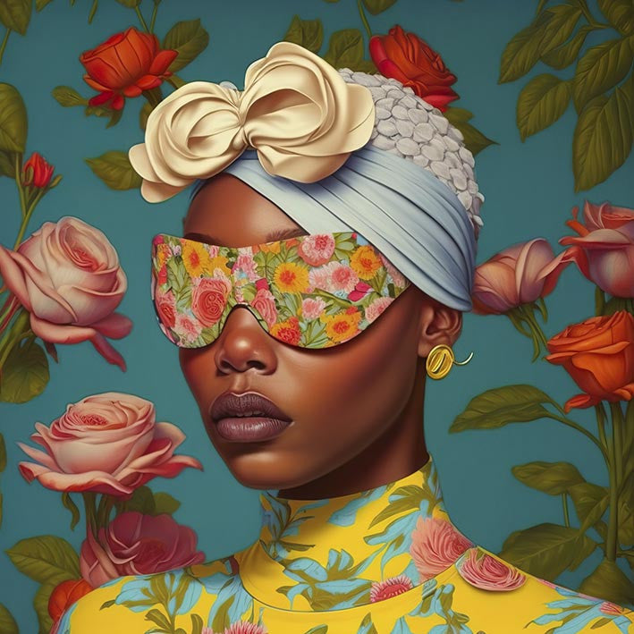 Glasschilderij 80x80cm Vrouw met gekleurde bril
