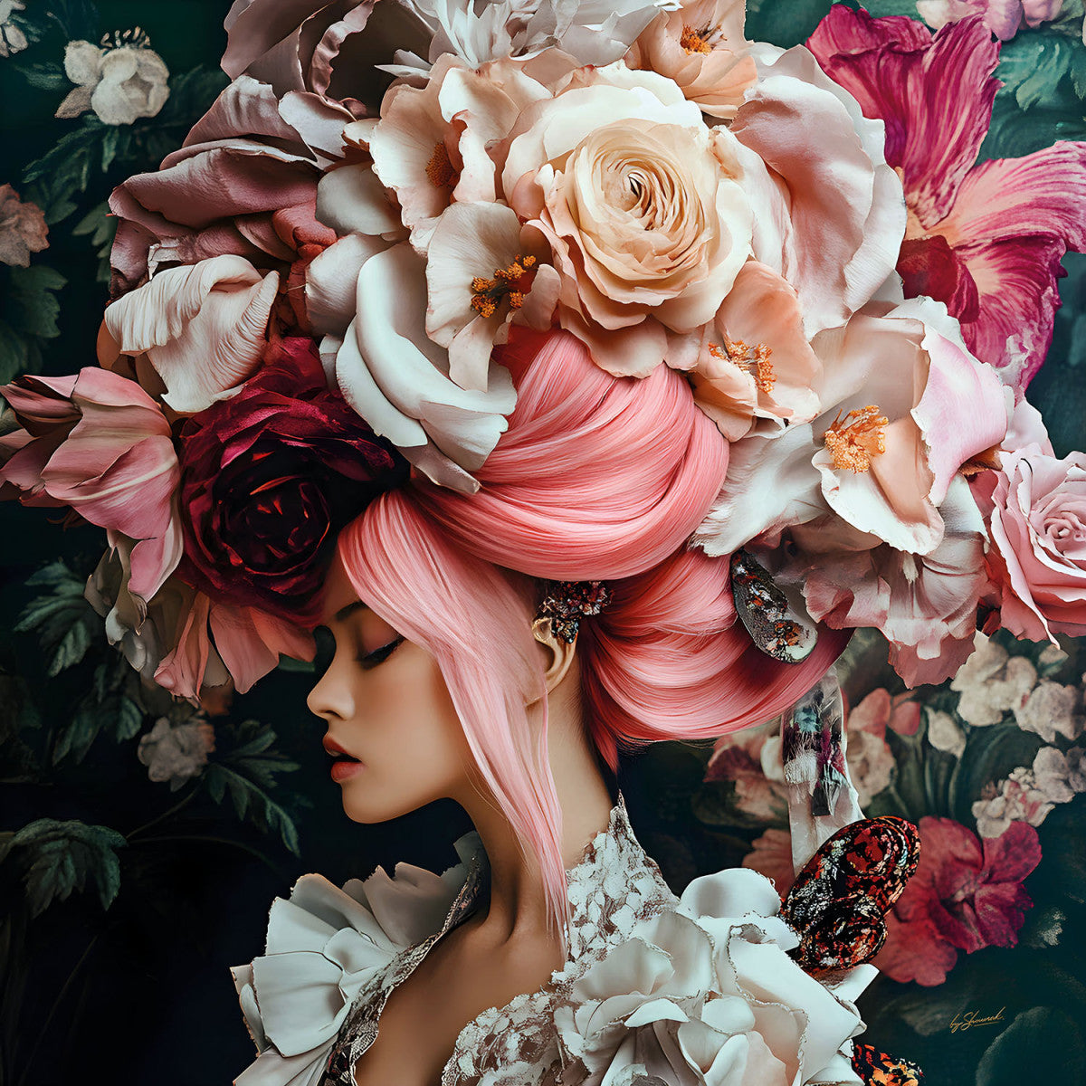 Glasschilderij 80x80cm Vrouw met bloemen links