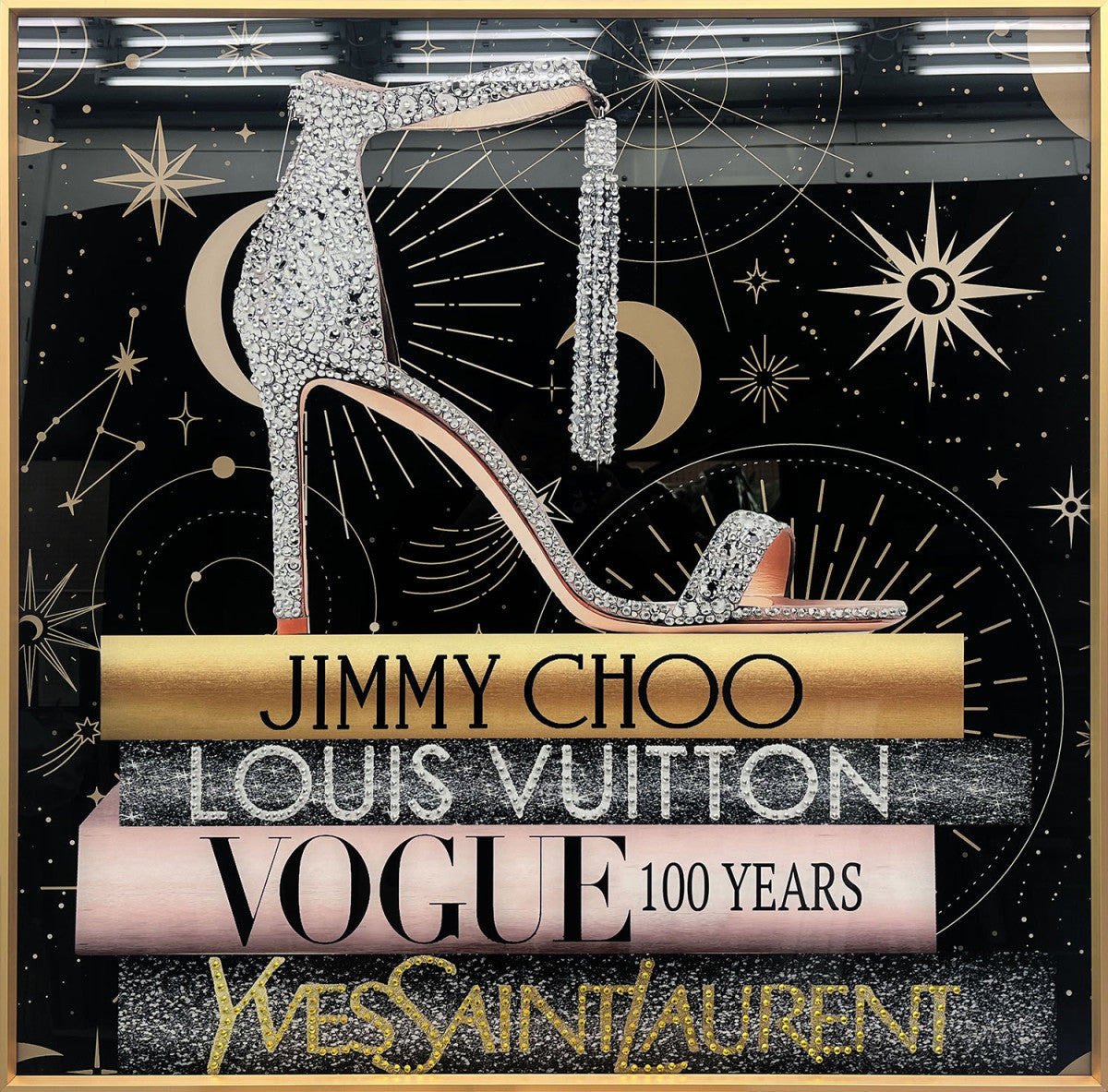 Glasschilderij met kristallen en lijst 80x80cm Hak op boeken