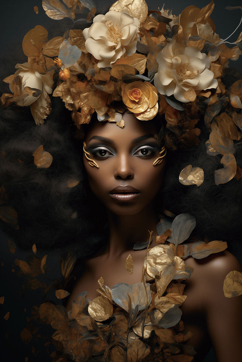 Glasschilderij 80x120cm Vrouw met goud/witte bloemen