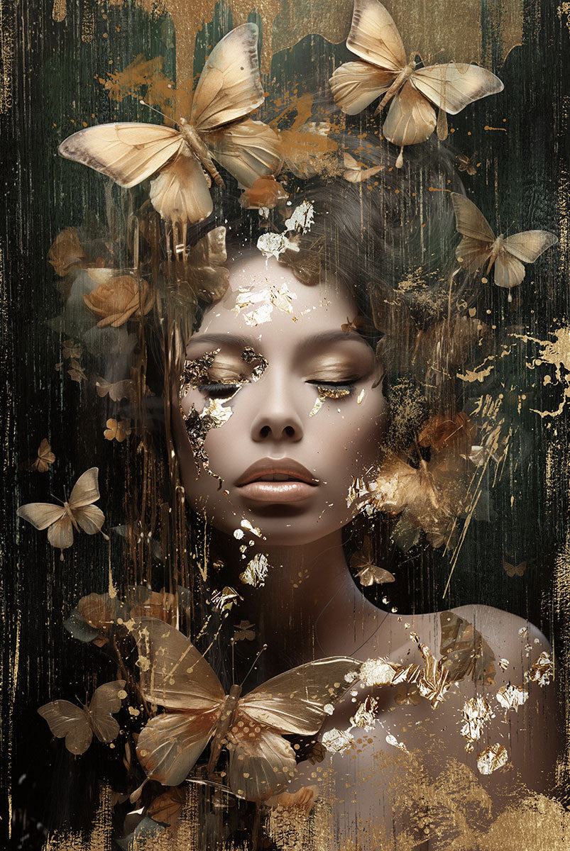 Glasschilderij 80x120cm Vrouw met gouden vlinders