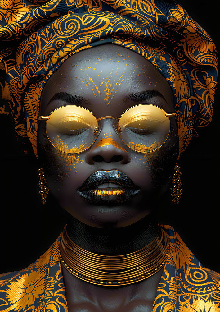 Glasschilderij 80x120cm Vrouw met gouden bril en kleding