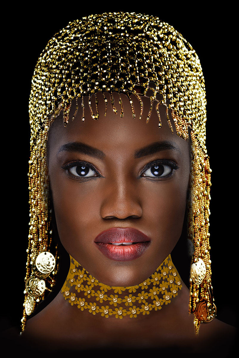 Glasschilderij 80x120cm Vrouw met gouden versiering