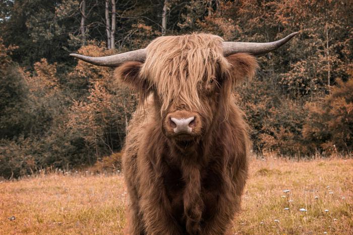 Glasschilderij 120x80cm Hooglander in het bos