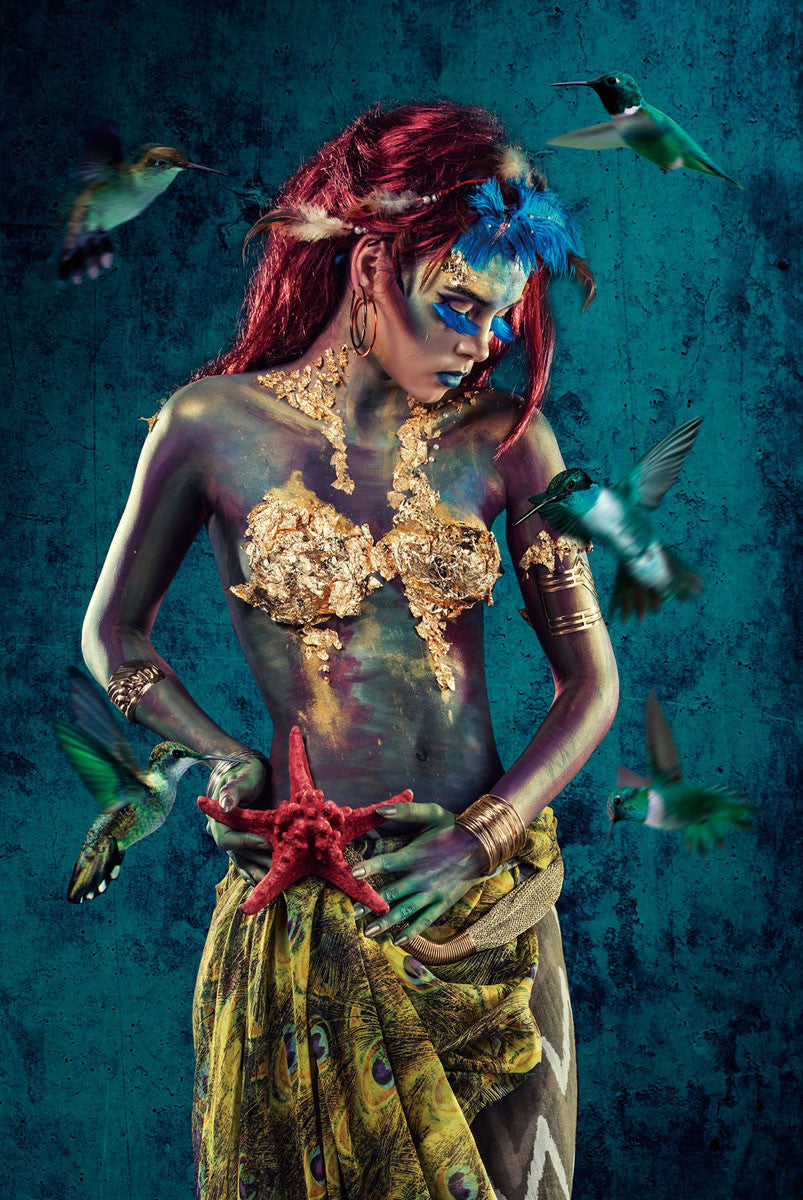Glasschilderij 80x120cm Geschminkte vrouw met zeester