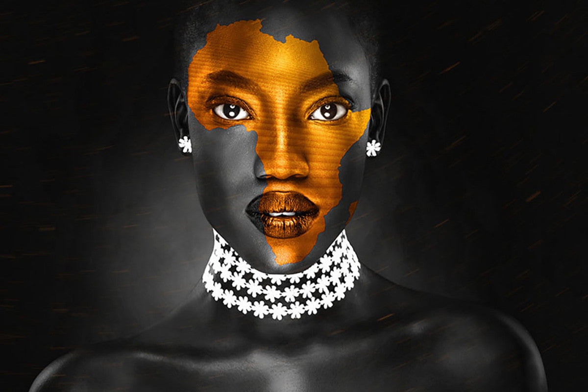Glasschilderij met 3D reliëf 120x80cm Vrouw met kaart van Afrika