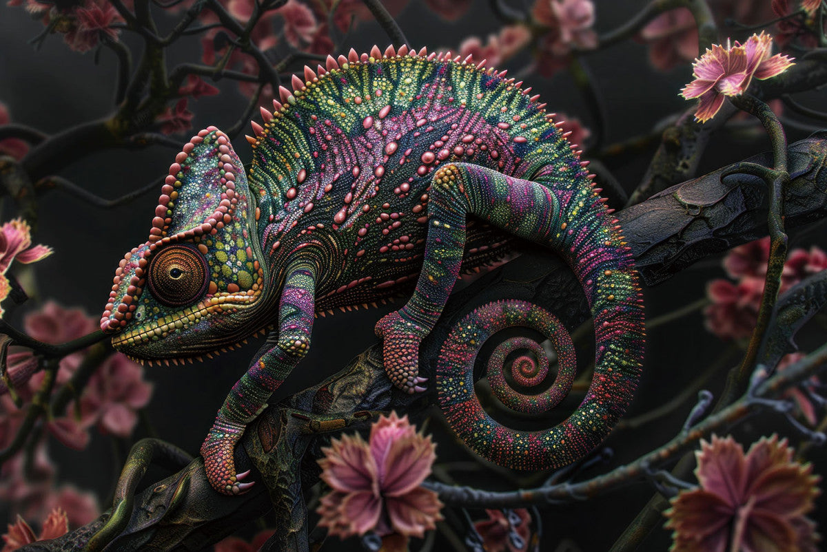 Glasschilderij met 3D reliëf 120x80cm Kameleon