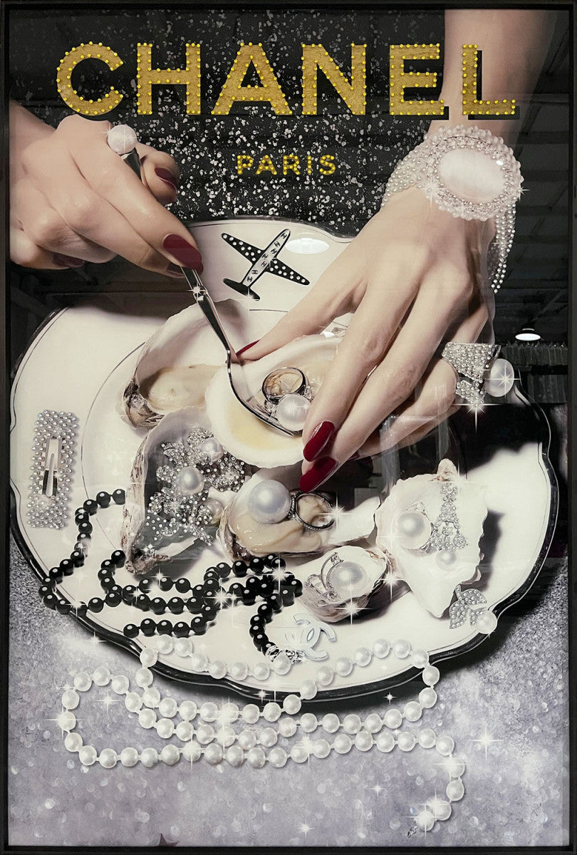 Glasschilderij met kristallen en lijst 80x120cm Parels