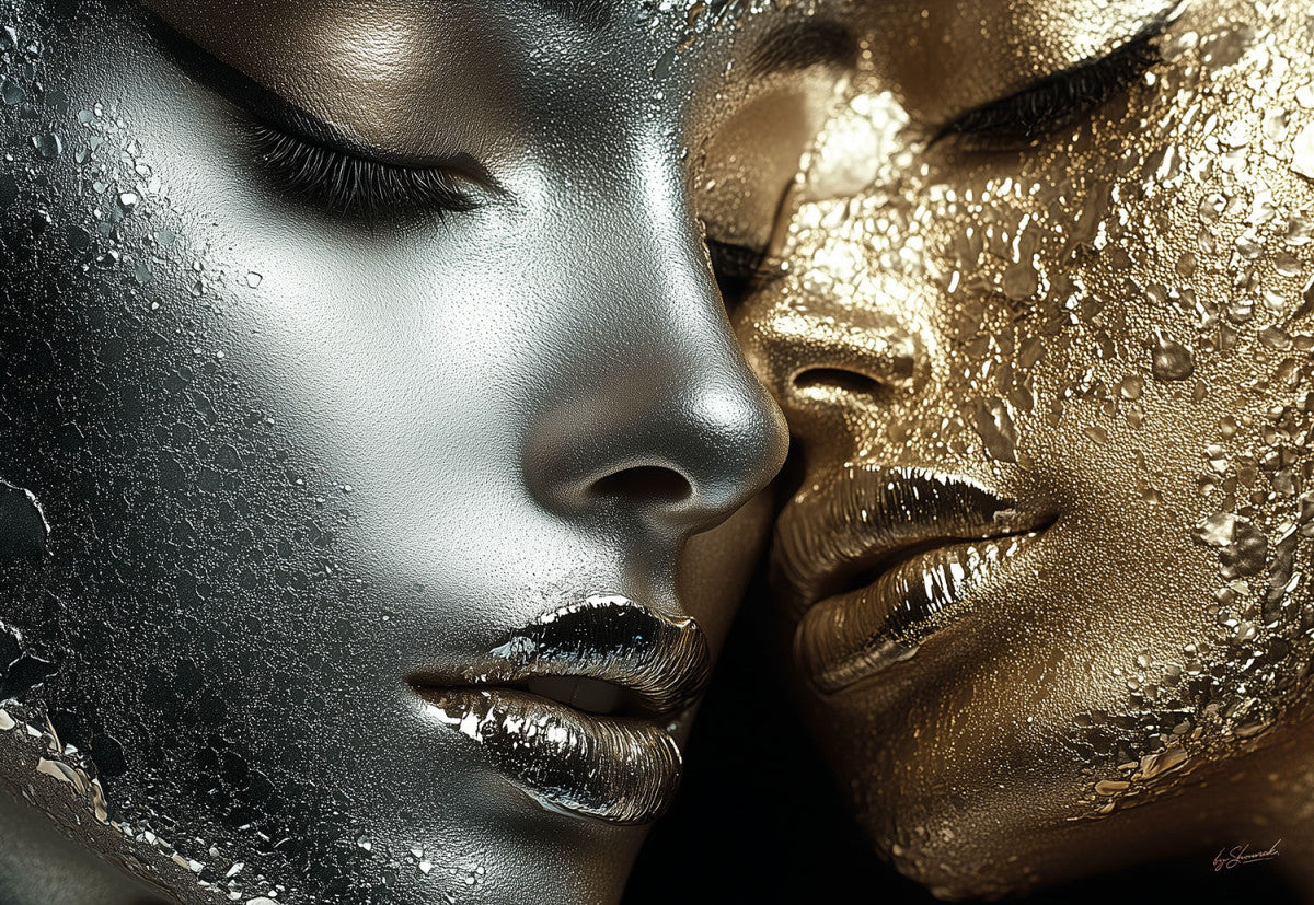 Glasschilderij 160x110cm Gouden/zilveren vrouwen