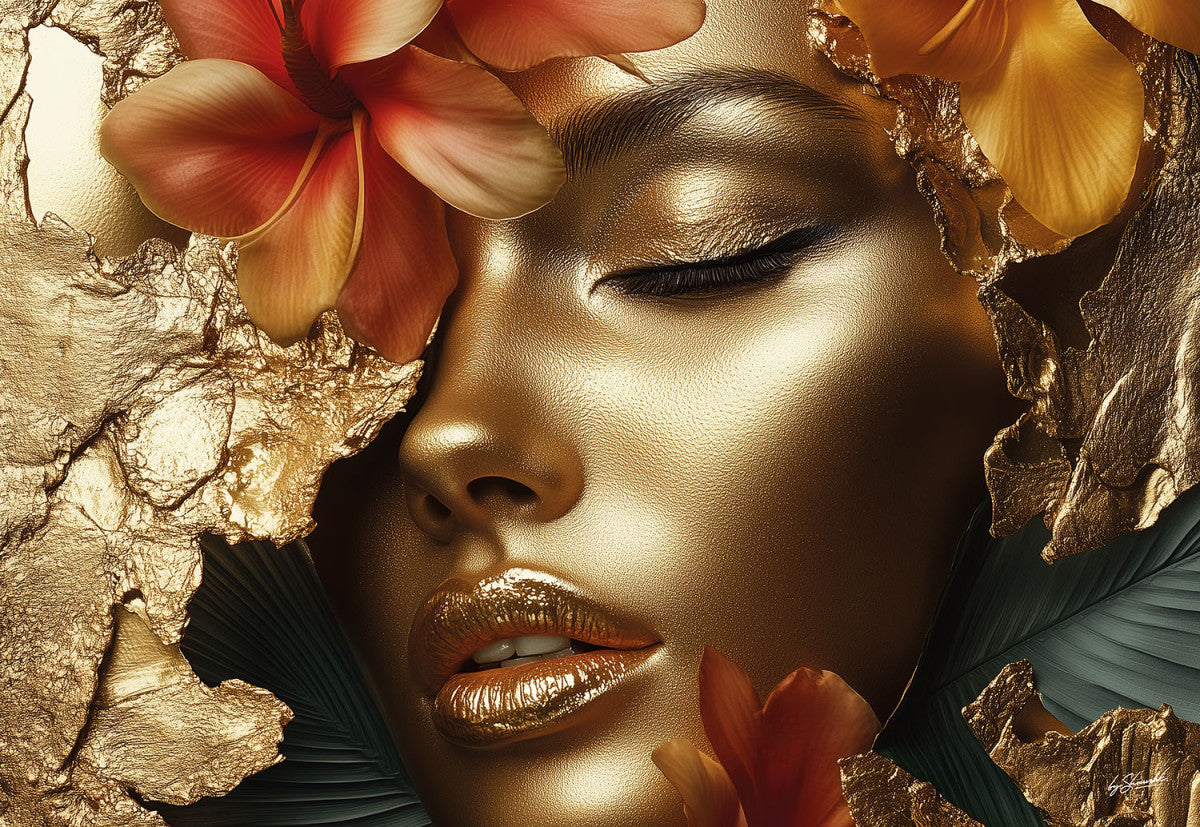 Glasschilderij 160x110cm Gouden vrouw in setting